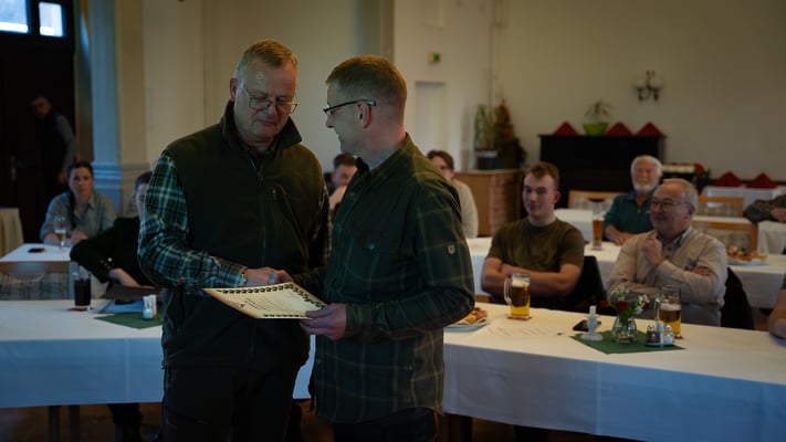 Am 21.03.2025 begingen wir unsere nunmehr 33. Mitgliederversammlung, zu welcher ca. 1/3 der Mitglieder erschienen. Nach Eröffnung durch die Oelsnitzer Jagdhornbläser und den 1. Vorsitzenden, hielten die Waidgenossen zur Ehrung der verstorbenen Mitglieder kurz inne.